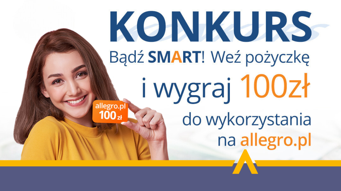 SMARTpożyczka to jeden z pożyczkodawców, który oferuje swoim Klientom bezpieczne pożyczki przez Internet. Jesteśmy po to, żeby każda osoba w finansowej potrzebie mogła pozyskać dodatkową gotówkę – szybko i bez zbędnych formalności. Teraz jednak nasi klienci mogą nie tylko pożyczyć na atrakcyjnych warunkach, ale zgarnąć również nagrodę w konkursie – jeden z 50 bonów do wykorzystania na Allegro!